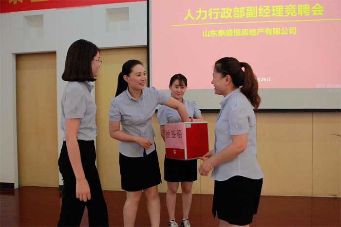 為健全公司管理機(jī)構(gòu),不斷優(yōu)化人力資源配置,6月28日,泰盛恒地產(chǎn)組織召開人力行政部副經(jīng)理競聘會。會議由工會主席趙慶芹主持,公司領(lǐng)導(dǎo)班子部分成員擔(dān)任評委,地產(chǎn)公司全體員工參加會議。