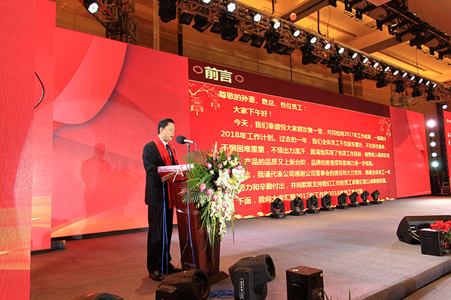 之后總經(jīng)理黃佑忠作了全面細(xì)致的工作報(bào)告,總結(jié)了公司2017年的工作成績及亮點(diǎn),安排部署了2018年的各項(xiàng)工作任務(wù)。黃總在報(bào)告中指出,2018年公司總體發(fā)展將圍繞“一個中心、兩大任務(wù)、三項(xiàng)指標(biāo)、四大提升、五個項(xiàng)目”展開,大家在新的一年里齊心協(xié)力,在“一二三四五”發(fā)展思路的指引下,以更加飽滿的工作激情,奮力譜寫公司事業(yè)發(fā)展新篇章。