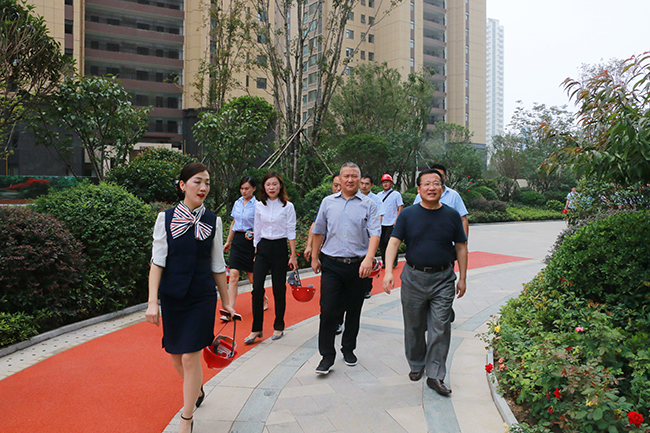 趙軍副總經(jīng)理首先視察了公司北城新區(qū)金泰·舒格蘭項目一期和二期已交付小區(qū),對本項目的建筑風格、景觀園林情況進行了現(xiàn)場調研,并詳細了解了物業(yè)管理及服務狀況。