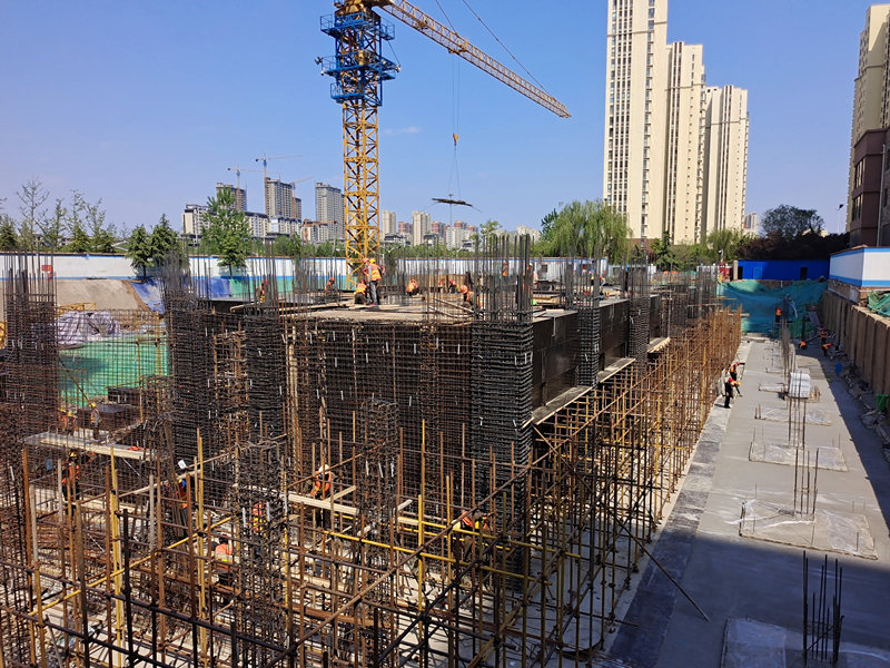 舒格蘭24#樓 負(fù)一層墻柱鋼筋綁扎、頂板支設(shè)推進(jìn)中