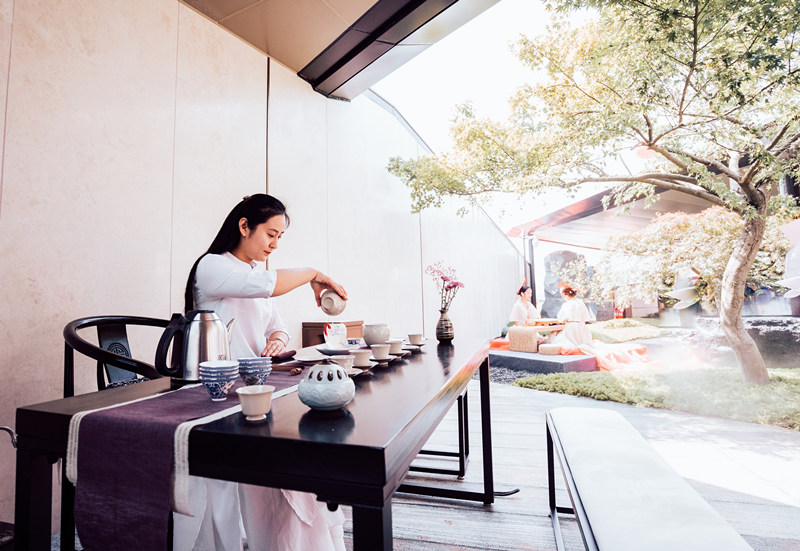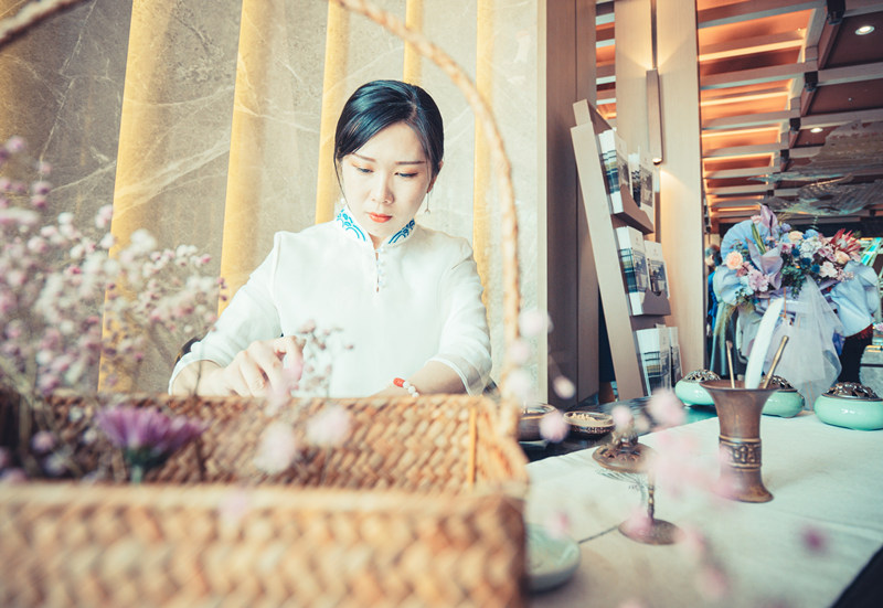 除了沙盤講解與入室品鑒,金泰·錦府營銷中心開放當(dāng)日更營造了一個(gè)古樸典雅與現(xiàn)代風(fēng)尚完美融合的新意境。一首古箏曲,滿園傳詩意;曲水流觴處,遍地是花香;中式風(fēng)骨韻,潤物細(xì)無聲。一條蜿蜒的水景溫柔的載著這五顏六色的花瓣將琴棋書畫茶酒花送往心中的遠(yuǎn)方,向眾人展現(xiàn)最淋漓盡致的美。另有桃花釀、桂花酥、英俊帥氣調(diào)酒師;調(diào)香師,茶藝師,圍棋美女見真章;書法家,國畫家,字畫之中有真諦……